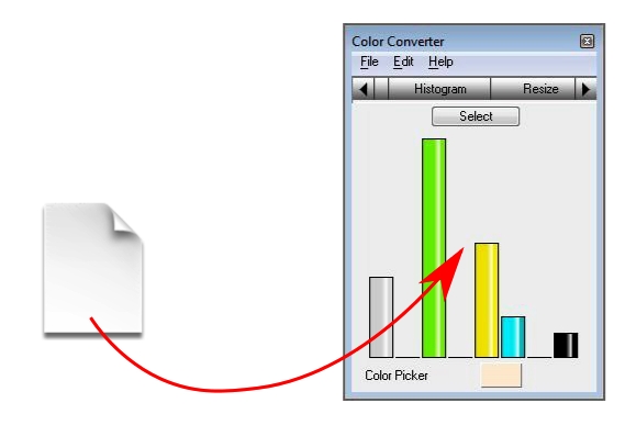 To create a histogram, drag a picture file into the Histogram tab of Color Converter. The histogram will be created automatically.You can also click on the Select button and select any area of your main screen.